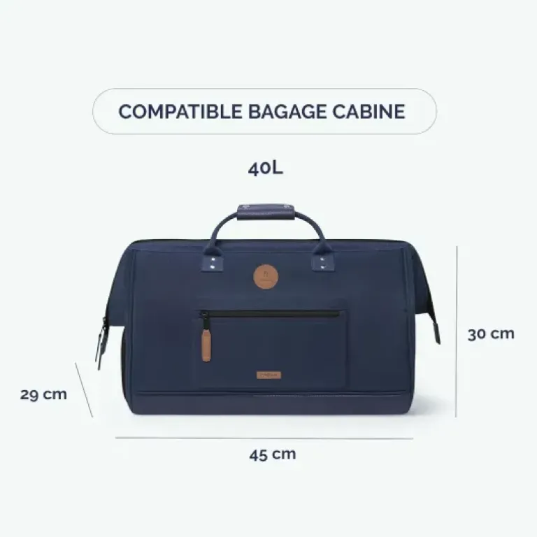 Concrètement, le CABAIA Duffle Adventurer Chicago 40L, c’est un sac souple de 45 x 29 x 30 cm annoncé comme compatible bagage cabine. Sur le papier, ils parlent de 40L, mais dans les specs Amazon on voit 36L, donc déjà, ça donne une idée : ne t’attends pas à un énorme sac de voyage. Pour moi, c’est clairement un sac week-end / court séjour, pas un sac pour une semaine complète à l’aise.