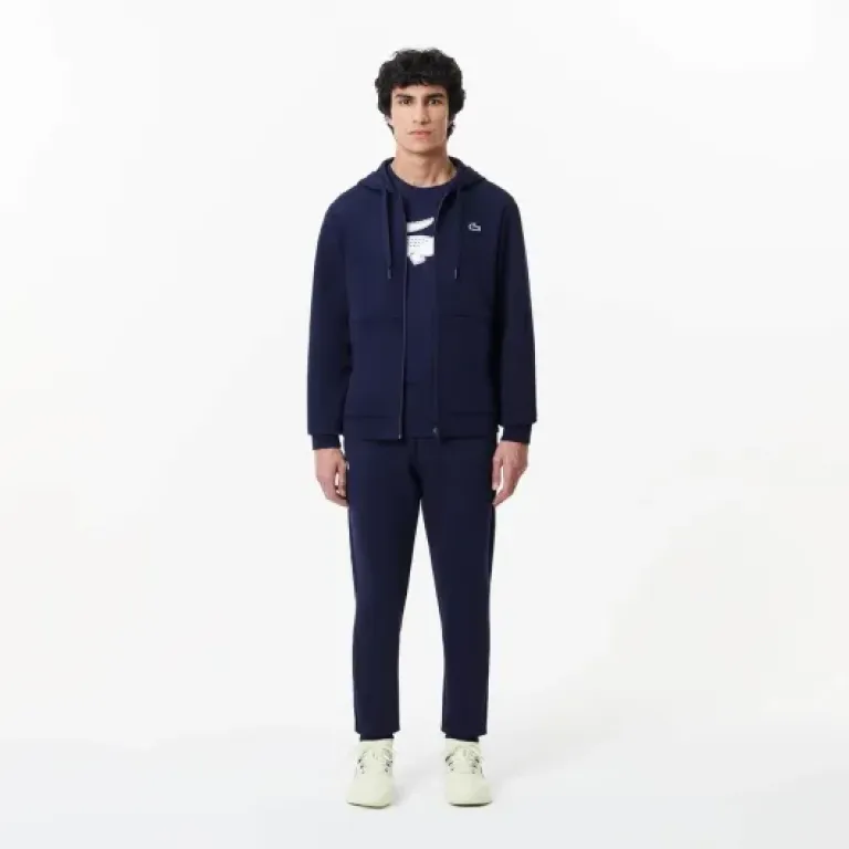 Niveau look, ce Lacoste joue clairement la carte du sobre + détail qui tape à l’œil. La couleur Marine/Blanc est assez passe-partout : le bleu marine est profond, pas délavé, et ça va avec un jean, un short ou un jogging sans se poser de questions. La coupe regular fit en XXL tombe plutôt droit, sans effet moulant sur le ventre, et sans faire sac à patates non plus. Pour un usage sport + ville, ça marche bien, tu n’as pas l’air en tenue de fitness quand tu vas boire un verre après la séance.